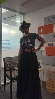 Sadly, this was a flop for me. I rented this to have an unstructured, flowy look (I'm 19 weeks pregnant) but it really didn't work. The material is quite heavy and almost rough (seemed like some sort of thick cotton?), which combined with the pleating meant it didn't really drape or move at all and just kind of hung there unflatteringly. The top is also an exposed, completely unadorned, 2" thick band of elastic - not only not flattering from a fit perspective but super casual / informal looking. All in all this really didn't work for my needs - maybe it would be better if worn as shown with a belt but even so I would caution folks who want to wear this even to a cocktail dress code event.