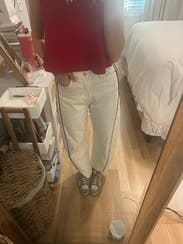 This is supposed to be cropped but was long on me! Very cute and trendy, a bit baggy but I loved them! If they fit better I would have kept them.