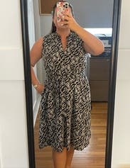 Natori’s Geo Embroidery Dress pairs clean tailoring with textured detail, featuring a tie waist and graphic embroidery throughout. Wear it with block-heel sandals and a structured tote for a polished work event or day-to-dinner plan.