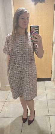 I loved this dress, and wish I had a picture to share! So many compliments on the color. It’s boxy, so I did belt it for a more polished look.