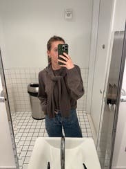 Brown (90% Wool, 10% Cashmere). Knits. Crew Neck. Long Sleeve. Pull On. Shoulder To Hemline Length: 25". Imported.