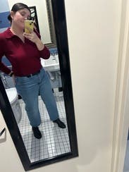 this was so perfect: the fit was ideal (comfortably loose, not shapeless), the deep cranberry color was gorgeous, and the fabric was so soft. loved it layered over a white tee!