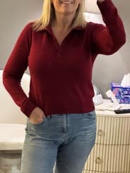 Beautiful doesn’t do this seater justice, especially when it comes to the color!! It’s soft and cozy, I love the collar, and it’s not bulky or heavy. You couldn’t ask for a better color with the holidays around the corner- it’s THE sweater you will be reaching for. Any occasion works, everyday, professional, party, date, and, during almost any season (depending on where you live). Absolutely worth the rent. I might have to purchase.