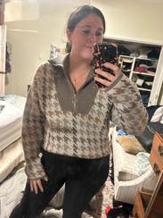 Really loved this sweater! Soft and very cute & trendy. Has a bit of an oversized fit, I’m normally a small & I sized down to an XS and it was still a bit roomy