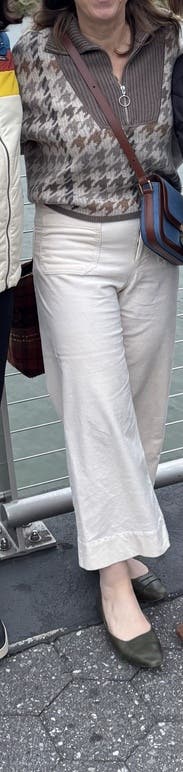 Enjoyed wearing this sweater! Soft, good crop length. Comfy but pu together. Not too baggy.
