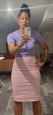 Paired the top with a purple linen skirt and it worked out well💜. Will definitely rent again with hopes I am able to get the matching skirt🤗