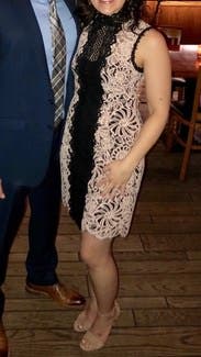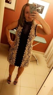What a fun dress! So classy, so comfy, the lace work on this dress was amazing and definitely an eye catcher. Received so many compliments and it is perfect for us ladies who have those bigger arms because it brings some softness to the physique.