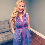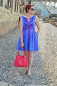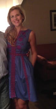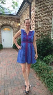 The color combination on this dress was fantastic for a summer day trip with my husband. It's super comfortable and I loved having pockets. It was the perfect length on me (many dresses run short on my figure) and the cut on the neck was just right for my bust-not too revealing! Loved this rental and all of Nanette's designs.