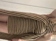 Lightweight material with a cool faux-wrap design. Colors are darker but still fun — tan, auburn, orange, and black. The top is narrow, so no regular bra, but it works. I’m 5’10” and the length hit perfectly at the ankles. The inner layer is a bit short, but the wrap covers everything. Not great for work, but perfect for dinner with friends or a beach event. A fun rental!