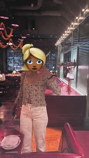 This was a cute top for day drinking! It was perfect with a jacket over it and I wore it twice while I had it in my shipment. The buttons have fabric on the inside of them so it doesn’t gap for bigger chested girls !