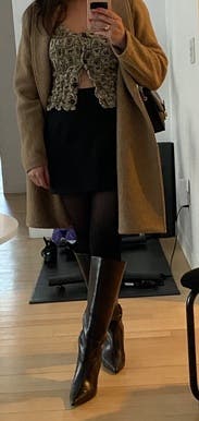 Wore this for a dinner out in London. Paired well with leather pants. Fit true to size & very flattering for smaller busts.