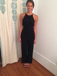 This edgy chic jumpsuit has a beyond flattering silhouette and an amazing fit. The intricately open back makes a simple look very unique. The slightly stretchy fabric helps mold your figure into this true to size fitting piece. As for backup, we recommend sizing up for backup if you're curvier and down for backup if you're smaller framed (especially in the bust). The size 2 fit well, but was a bit large for me in the bust. I would have definitely liked to have tried the size 0. Be aware this jumpsuit does fit larger cup sizes, but be aware of the closely cut sides that may require fashion tape. Overall an amazing look! Pair with delicate and simple jewelry.