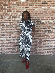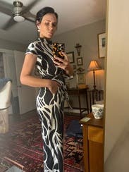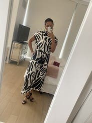 This jumpsuit did the trick! It was classy yet flirty and I felt beautiful. Has just enough stretch and the black and white print is vibrant and stylish.