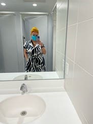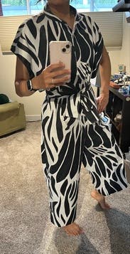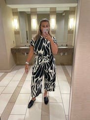 Great jumpsuit for work! Fits true to size and loved the pattern.