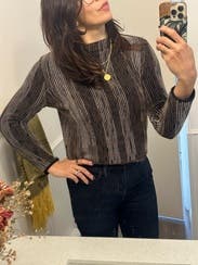 This sweater was OK. I did wear it. I love the color and it matches great with mocha brown pants. I think it was the print that I felt made it look a little weird, but it was the perfect length and it was comfortable to wear.