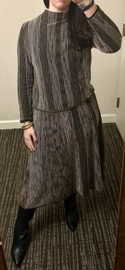 I wore on thanksgiving and for some family fall pictures. I liked the color pattern for this time of year. sleeves a bit tight but fine for me. I would have worn for work also so will rent again.