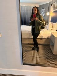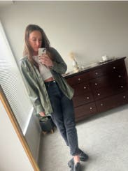Loved this soft buttery green vegan leather shacket. Really comfy and perfect medium weight. Took on vacation and wore as a light leather jacket several days.