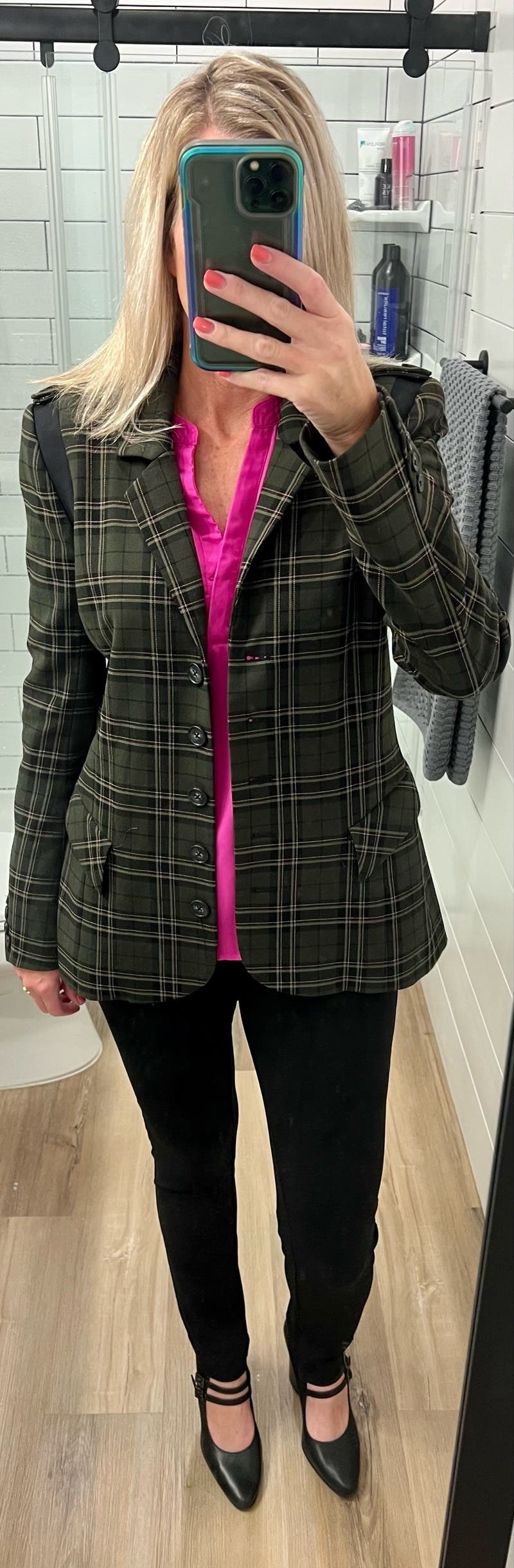Dark plaid makes this Nicole Miller blazer a statement piece for the office.