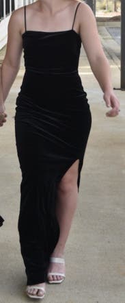 Velvet, curve hugging in all the right places, slit AND adjustable straps. This dress was comfortable and gorgeous, would definitely recommend again.