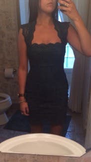 This dress was perfect for my Christmas party. I chose the L instead of M because it fit my hips better. The lace in back was a little loose because I'm smaller on top but it wasn't noticeable since my hair was down. The lace looks a little worn probably from multiple uses but it still looked amazing.