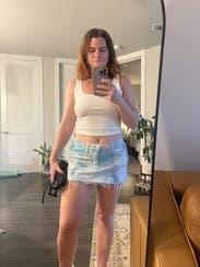 This skirt was very short and was a tiny bit loose in the waist, but I loved the early 2000s fit and it was fun to wear a couple of times. Wore to a concert where I danced all night and the length was fine just have to be somewhat careful. Fabric was so soft and loved the fun print!