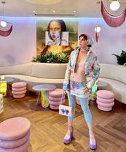 Whether you're headed to Coachella or a fab night out, this tie-dyed RTR upcycled denim mini by Nigel Xavier is giving dreamy festival vibes.