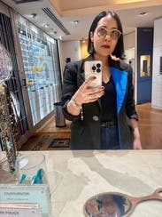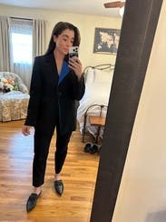 Love the pop of color, but this blazer has a boxy, masculine cut and is also very long. Nothing wrong with a boxy cut, but it's not what I was looking for. I ordered a 38/6 but probably should have sized down to 36/4. Didn't bother to take a photo.