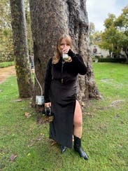 I felt so good in this! I have a belly but the black and velvet helped hide it and THE SLIT takes the show. Shows curves and the high neck gives good dramatic effect paired with all the leg you'll be showing. So many compliments.
