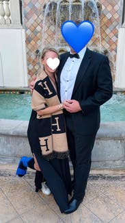 Loved this dress! The size I wanted wasn’t available to be shipped at the last minute, so I chose to wear down one size. While it fit, I definitely would’ve been more comfortable in my actual size. I received lots of compliments and it was perfect for the black tie optional wedding. I let the front wraps hang to cover up my belly a little (and to wear the necklace) but if I had the correct size, I could have wrapped them around my neck or tied them somehow. It’s a versatile dress and super cute! Love the side slits!