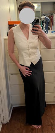 I accidentally ordered a larger size than I wanted - the arm holes were too big but I still made it work. Loved trying this "vest" trend and have rented a few other vests since this one.