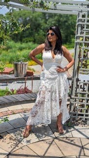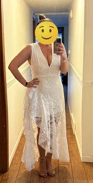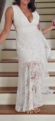 I was looking for a white dress with lace detail that was fitted on top and had some flowiness to it, for my engagement photos. This dress was exactly what I was looking for! Unfortunately, my size wasn't available, so I got my next size up. The chest was too large and loose on me, but I was able to fix it with a push up bra and fashion tape and it still looked stunning in our pictures.
