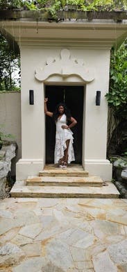 Wore this on vacay to Puerto Rico. The ruffly skirt is so fun! A little bit long for us shorter girls. Would rent again!