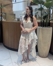 Wore this for my wedding dinner. It was elegant and comfortable. The lace is so much prettier in person!