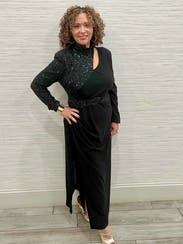 This dress is very flattering! I thought it might be too plain but the slit, cut out and sequins make the dress pop. I received lots of compliments. Highly recommend.