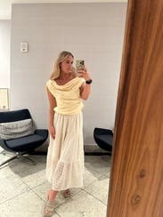 Such a cute off the shoulder top in a flattering fit! Beautiful butter yellow color!