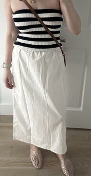 Wanted to love this so much but it just isn’t flattering. It has a drop waist and that wasn’t for me. I folded it one time to make it work. Great quality, just Not my fave