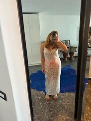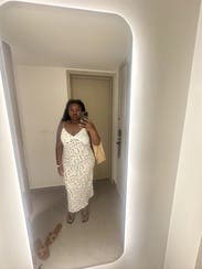 Very pretty. Wore this as a cover to pool party and kinda felt like I was wearing lingerie, but hey, I got a ton of compliments. I think it gives honeymoon or bridal shower vibes but who doesn’t like white for summer?! There’s no slit so I had to gather it to walk with purpose…if you’re a slow meanderer, maybe you’d like it, but I kept chasing small children and I’d gather it up past my knees haha