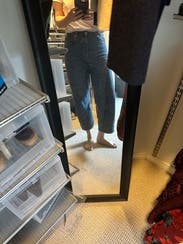 These are the first barrel jeans I’ve actually liked on me! They’re not too dramatic but still a fun change from my standard straight or wide leg jeans. I struggled a little to figure out what shoes to wear with them… they were slightly too cropped to wear with some of my ankle boots but I didn’t love them with flats or loafers. Fun to step outside of my comfort zone! I often have to take jeans in at the waist and these fit me well - my measurements are below. Waist - 29” Hips - 40.5”