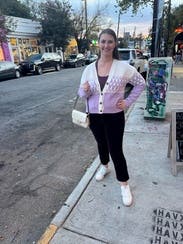 Loved the idea of purple pants with a different texture, but the cut was very strange. They were a bit too cropped.