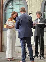 I had 3 wedding dresses lined up that I had bought, including a vintage crepe Givenchy and a vintage strapless cotton lace Christian Lacroix. I saw this dress a few days prior to my wedding and I knew I had to try. I am so glad I did. I was the most perfect dress.
