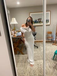 Rented this for a white Party and ended up wearing something a little less bridal. But this would be absolutely perfect for a rehearsal dinner for a bride! Or even a reception dress. Very flattering and comfortable.