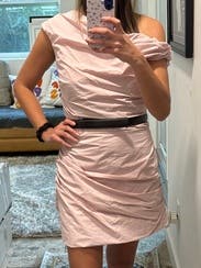 I could not have loved this dress more! The sturdy fabric created this beautiful sculptural feel and it just draped really nicely. The sleeves were fun and you could wear them a few different ways. I ordered a S and XS and easily could have worn both, but went with the XS for a slightly snugger fit.