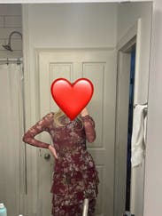 This dress is not what I would typically reach for but it ended up being perfect for a November NC wedding on a gorgeous evening! I wore a sticky bra because the back is rather sheer. In some reviews, they said they wore nothing but I could clearly see their breasts in the pic. If that’s your jam, then great but i preferred to be covered. Material is stretchy and clings in a good way because the ruffles covers any imperfections. This could work for many sizes! I am 5’10” and wore 6 long.