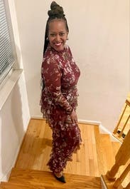 Great colors for a fall event. Fits great and super comfortable. I loved the sheer fabric—back was see through so you can’t wear a bra unless you are ok seeing it.