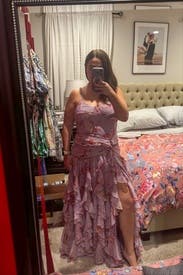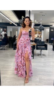 I wore the 2P and it was just a tiny bit too long, but wasn’t a problem! (I’m 5’3”) I wore to a Miami wedding and got tons of compliments all night long. The ruffles are so fun to dance and spin in! Would def rent again, 10/10!