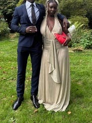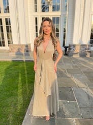 This is an absolutely beautiful dress. It's more golden than shown in the model picture but that worked even more in my favor. I wanted something that would be flattering postpartum and this hit the nail on the head. I ended up wearing the smaller size because it does run a bit large.