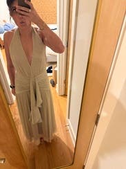 Wore this to a black tie wedding and got so many compliments! So flattering although should’ve fashion taped the chest area down at times