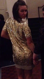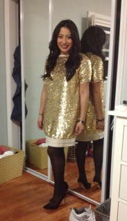 I wore this for my birthday party, and then again for a night out I loved it so much! It is an awesome dress and I would love to have it in my closet someday. Perfect amount of bling and the cut made it very classy. I am 5'11 so I will warn other tall ladies, wear this to events you are not expecting to sit down too much. I got a lot of compliments and I felt that the color was a great bright gold. The fact that it is lined was also a plus, it was very comfortable.