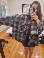 Style this oversized flannel button-down by Petar Petrov with your favorite mini skirt and boots for an instant cool girl outfit.
