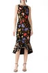 Black floral printed crepe (92% Polyester, 8% Elastane). Sheath. Sleeveless. Square neckline. 42" from shoulder to shortest hemline, 47" from shoulder to longest hemline. Imported.